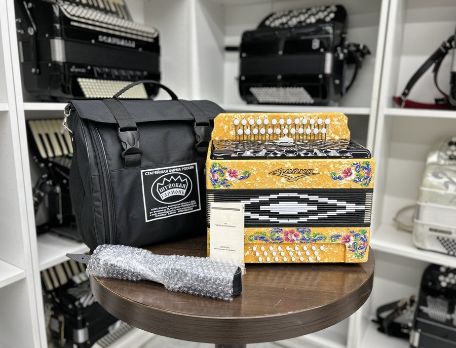 В комплект поставки входит: гармонь «Чайка» 314 - 25х25-III-2 - 1 шт. футляр(мягкий) - 1 шт. ремни плечевые - 2 шт. паспорт - 1 шт.